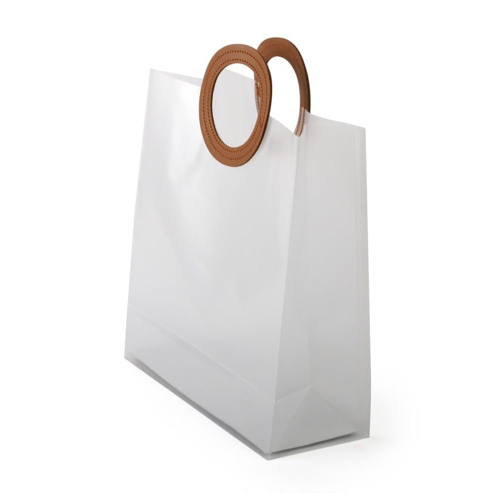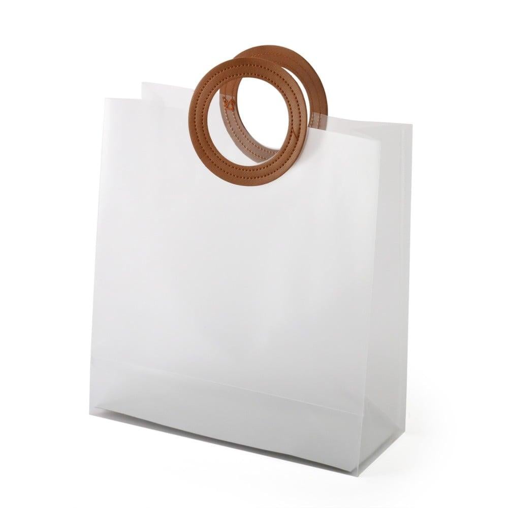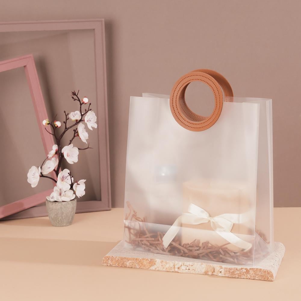 • شارك مشاعر الفرح والبهجة مع عائلتك وأحبابك وأسعدهم بتقديم مايحبونه في أكياس هدايا شفافة، والمصممة بمسكات دائرية من الجلد البني الفاخر لمظهر أكثر جاذبية.