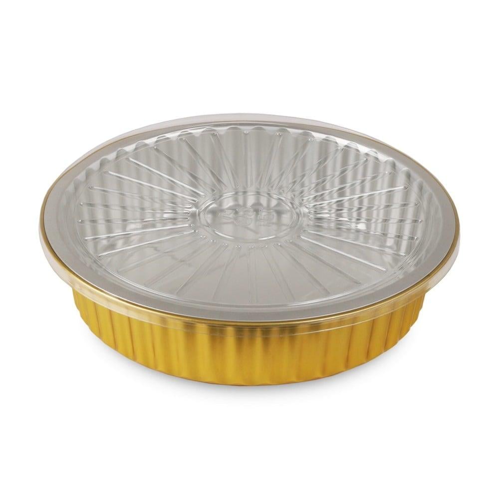 صحن المنيوم دائري بلون ذهبي مع غطاء (3 حبات) |25*21*5.6 سم