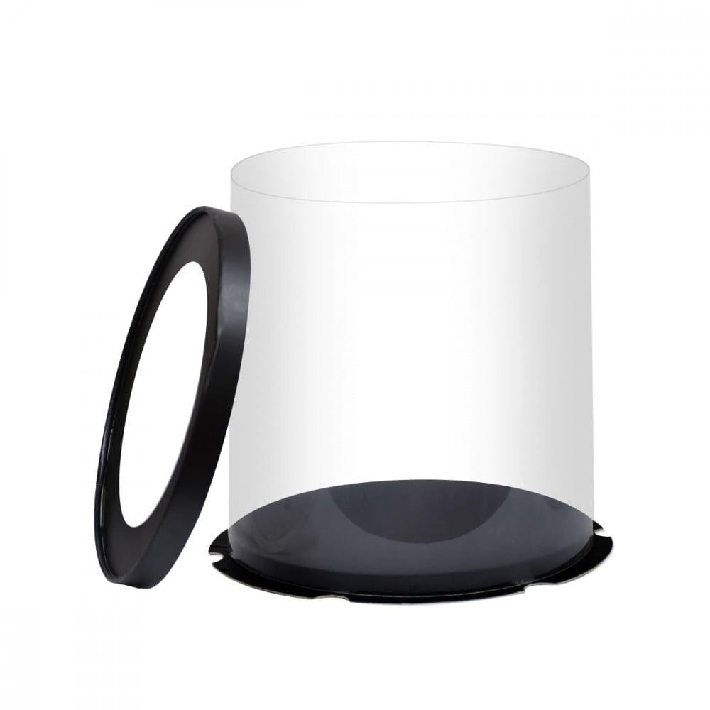علبة دائرية شفافة للهدايا والكيك القاعدةالغطاء : اللون أسودالقاعدة : اللون أسودالوسط : بلاستيك شفافعرض القاعدة : 26 سمالإرتفاع : 23.5 سمالعدد : 1 علبة