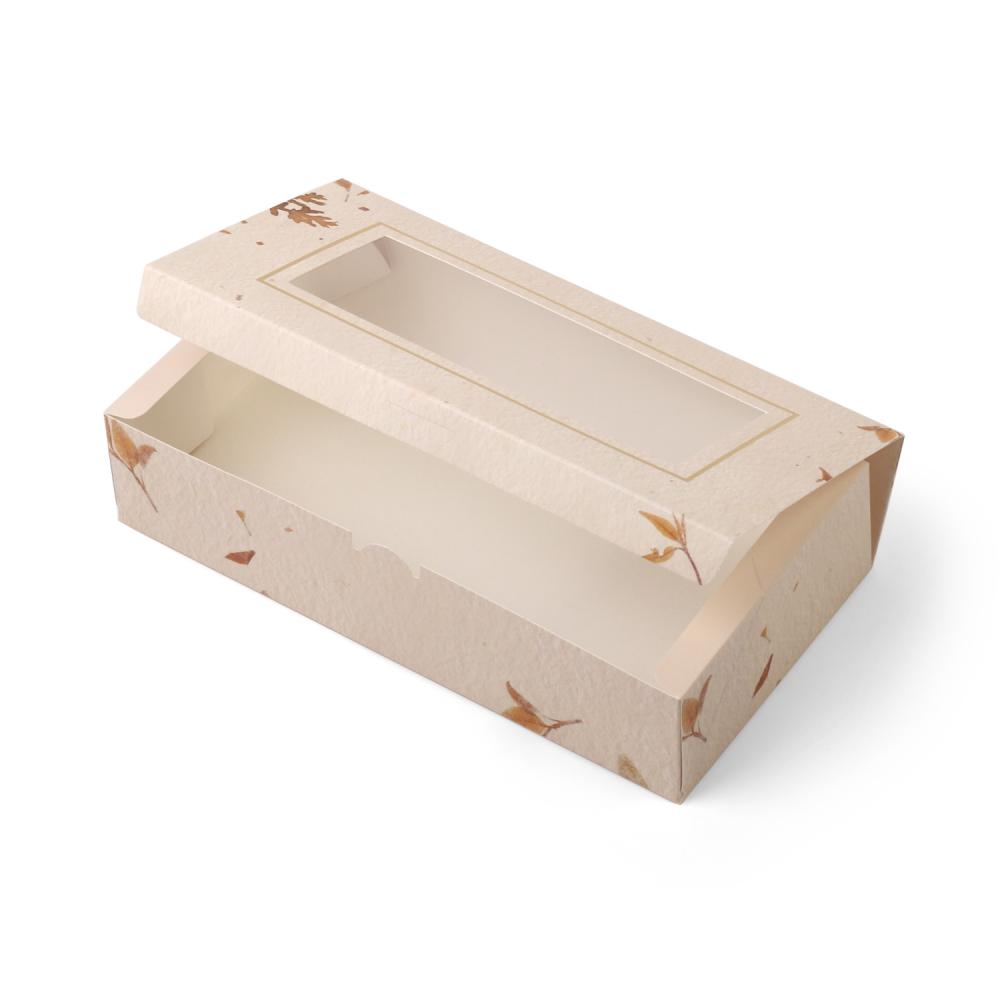 برسمة ورود ونافذة شفافة تظهر ما تحتويه العلبة ، اجتمع التصميم الرائع مع الجودة العالية