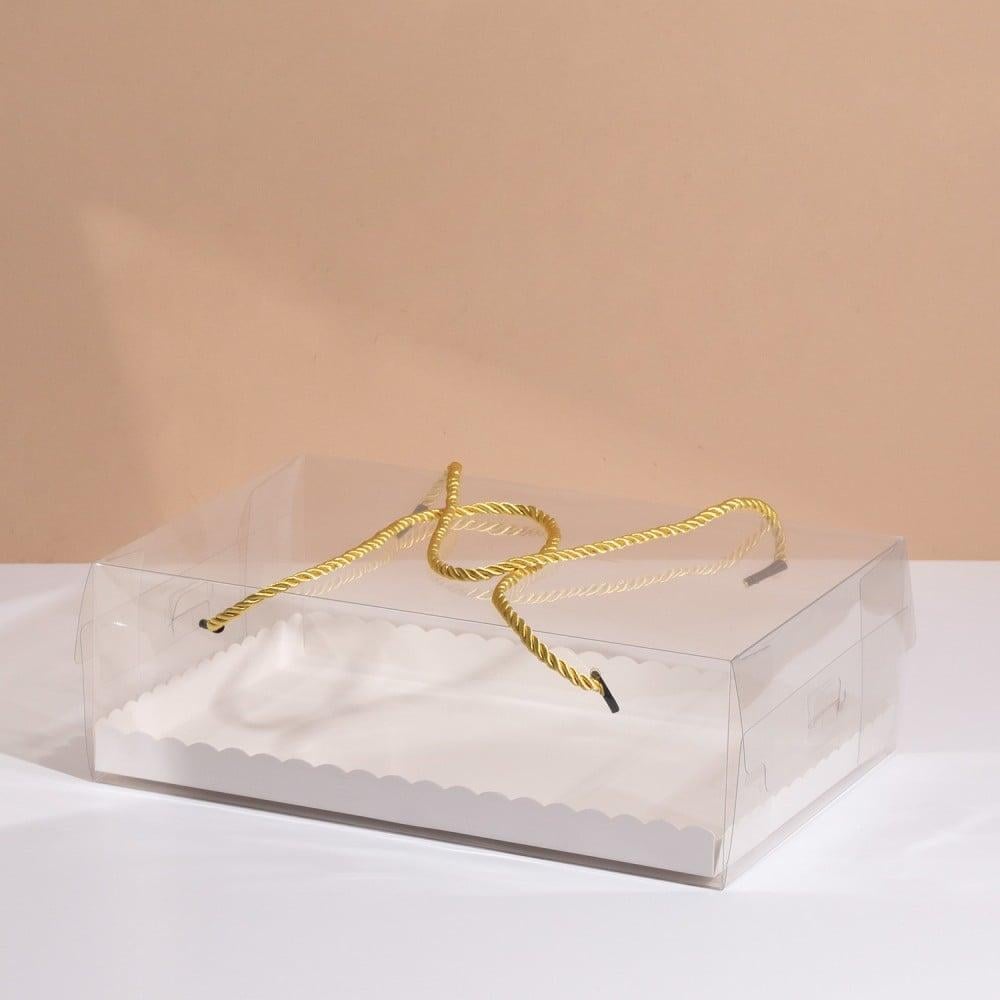 هل سئمت من استخدام العلب التقليدية وتبحث عن علب ورقية بتصميم متفرد يبرز جمال مخبوزاتك؟علب ورقية تتميز بوجود قاعدة ورقية بيضاء بأطراف مموجة أنيقة وغطاء شفاف مرتفع يبرز ، جميع جوانب المنتج ويلبي متطلباتك من الناحية العملية والتسويقية، بالإضافة لإتصال الغطاء بمسكة من القماش باللون الذهبيمميزات علبة ورقية بغطاء شفاف قاعدة ورقية مقاومة للدهونحبال ذهبية لتسهيل حمل العلبةعدد 2 غطاء جانبي قابل للإغلاقللكيك، الكب كيك، المعجنات ، الكوكيز ، علب الحلى وقطع الشوكولاتةتستخدم أيضاً كتغليف مميز ليبرز جمال تفاصيل الأعمال اليديوية مثل الملابس والعرائس المصنوعة من الكروشيةخيار ممتاز لمحلات الكيك، الحلويات والمخبوزات بالإضافة إلى متاجر الأعمال اليديويةمواصفات علبة ورقية بغطاء شفافالطول: 30 سمالعرض:21 سمالارتفاع: 10 سماللون: أبيض بغطاء شفافالكمية: (6) علب ورقية