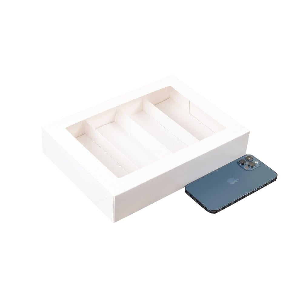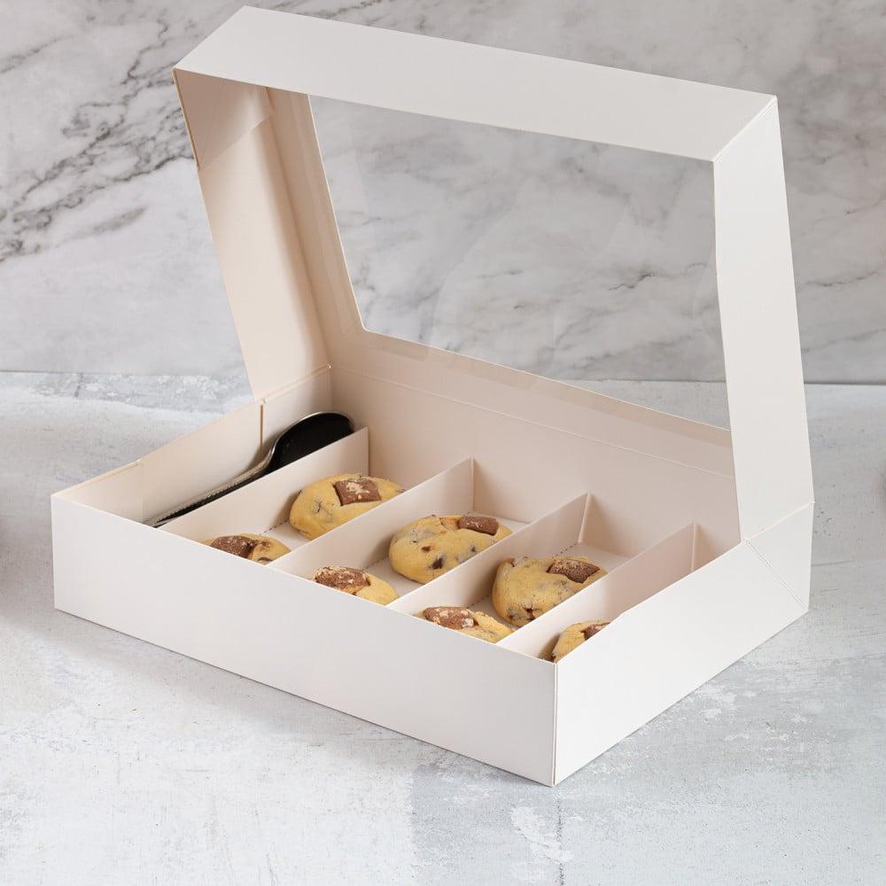 لتقديم الفطائر و الحلويات علب مقسمة 5 اقسام وبنافذة شفافة5 اقسام للحلويات والفطائر وقسم لوضع الملاعق والشوكاللون: أبيض سادةالطول: 29.7 سمالعرض: 22 سمالارتفاع : 6 سممقاس القسم الواحد: 21.5 سم*6.5 سممساحة النافذة الشفافة : 23.5*16 سمبالامكان ازالة التقسيم الداخليمانعة لتسرب الدهونالعدد: 12 علبة