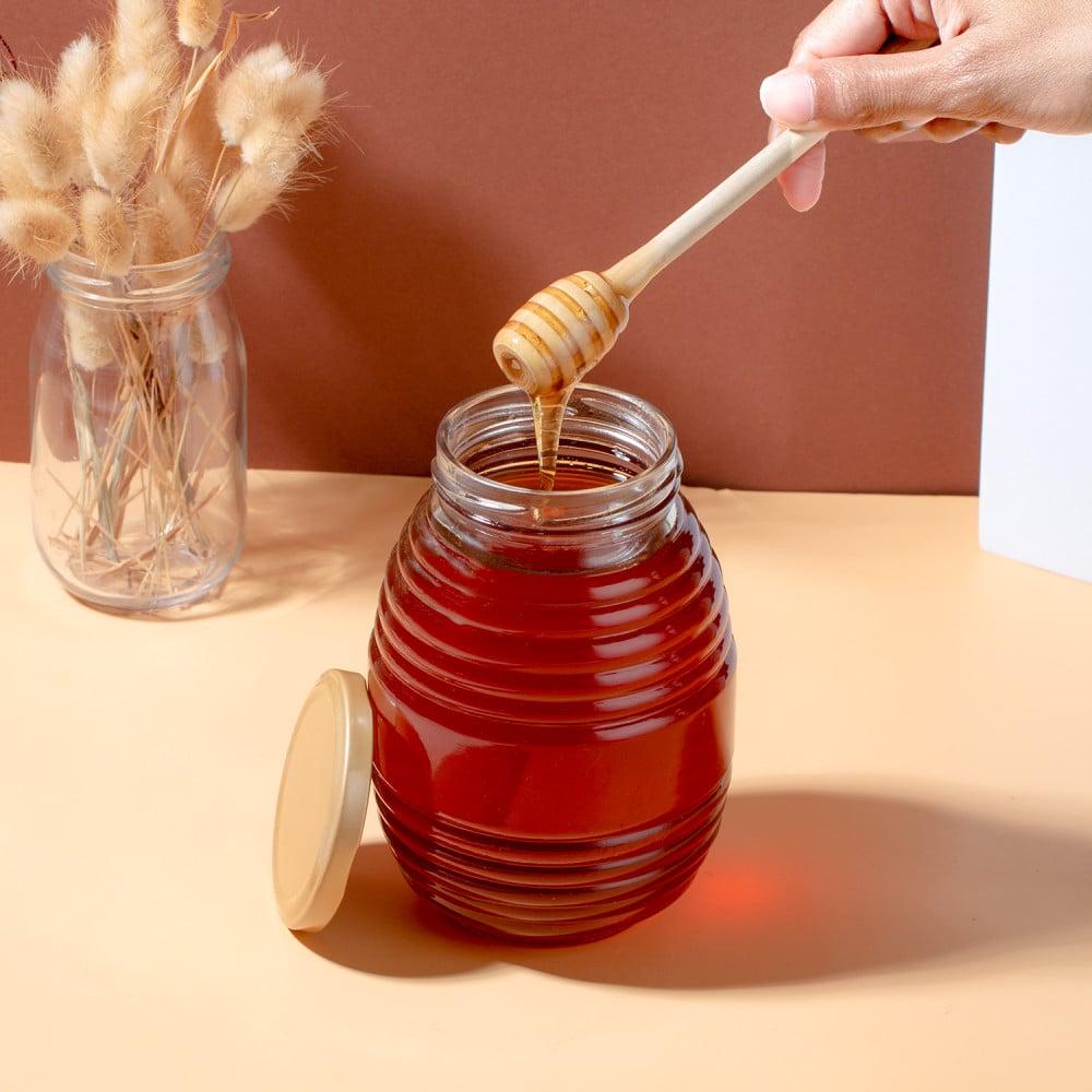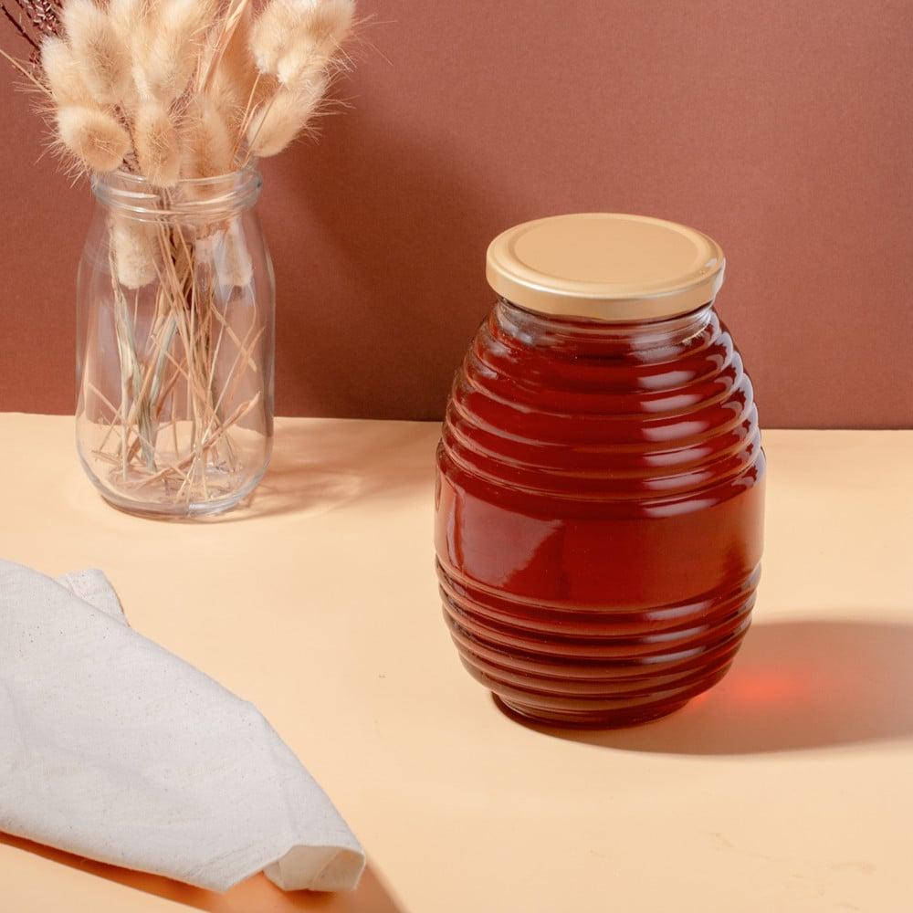 قارورة زجاجية بتصميم مميز لتعبئة منتجات العسل زجاج فاخر ورق لاصق حمايةشرينك حراري للاغلاقإستيكر للإغلاق أعلي الغطاءالسعة : 730 مل الطول : 8 سمالعرض : 8 سم الإرتفاع : 15سمالعدد : 12 قارورة