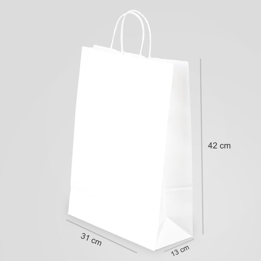 كيس ورقمسكة سهلة الحملاللون أبيضطولي الشكلالطول :31 سمالعرض : 13 سمالارتفاع: 42 سمالعرض(القاعدة) : 13 سمالعدد : 12 كيس