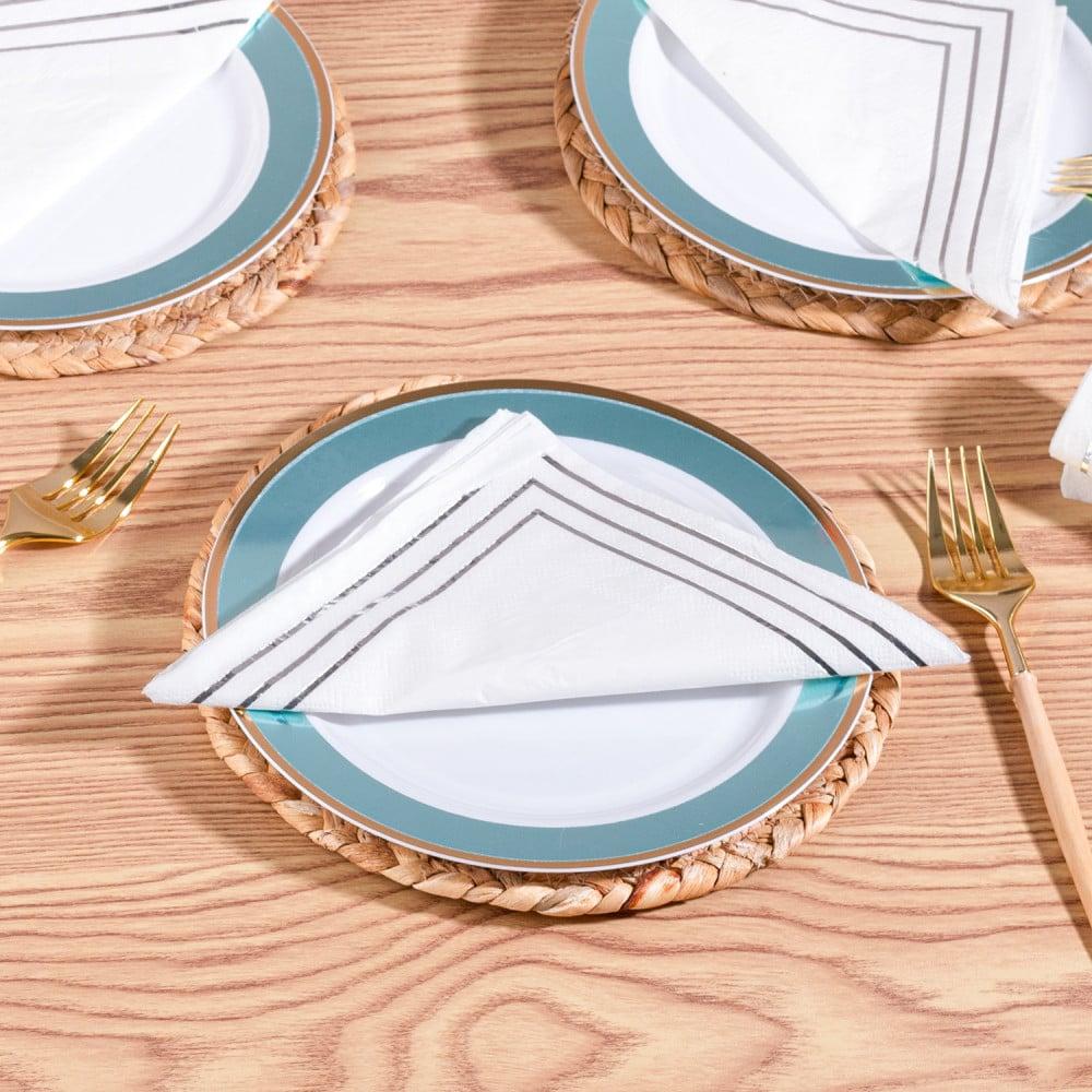 • هذه المناديل الورقية ذات الإمتصاص الفائق والمتانة من مخازن التغليف ليست للتنظيف فقط ، بل صممت بلون أبيض وإطارات باللون الفضي لتكون اكسسوار فاخر ومكمل لمائدة السفرة التي تجمع حولها الأهل والأحباب