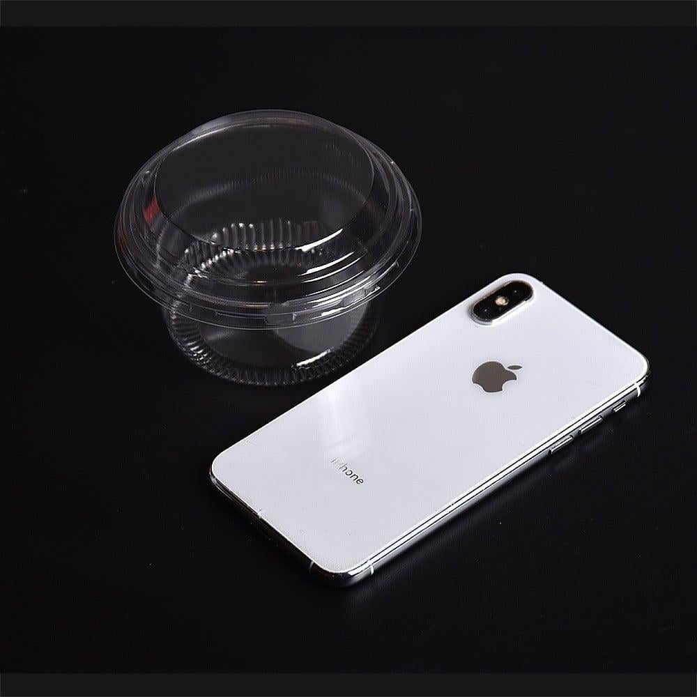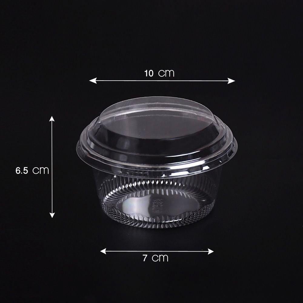 علبة بلاستيك شفافه دائرية للحلويات , السلطات , الايس كريمغطاء منفصل محكم الإغلاقالطول : 10 سمالعرض : 7 سمالإرتفاع : 6.5 سمالعدد : 25 علبة