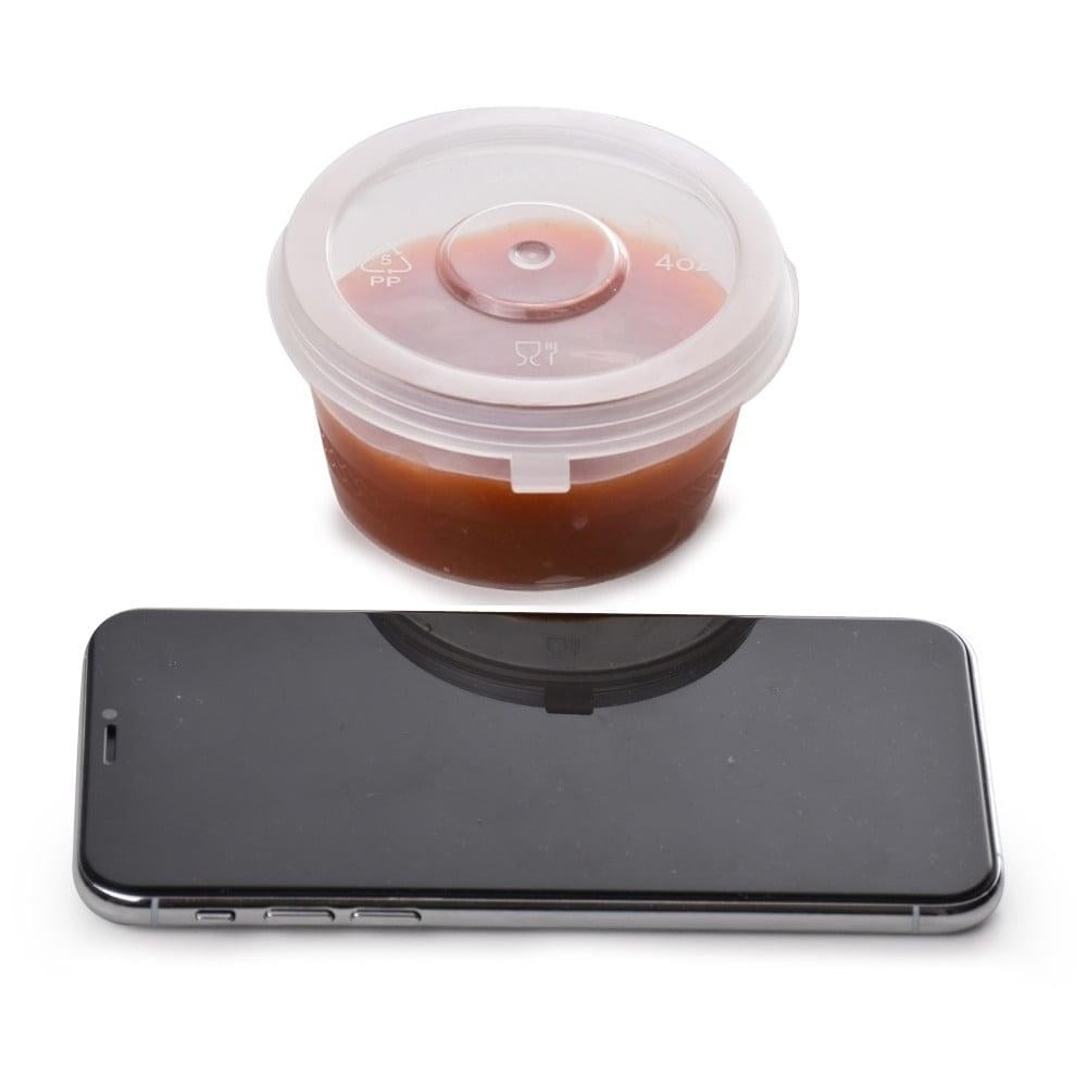 لتقديم الصوصات والعينات , علبة بلاستيكة شفافه باطار منقوش غطاء متصل بالعلبة السعة: 110 ملالطول: 4.2 سمالعرض: 8 سمالعدد: 50 علبة