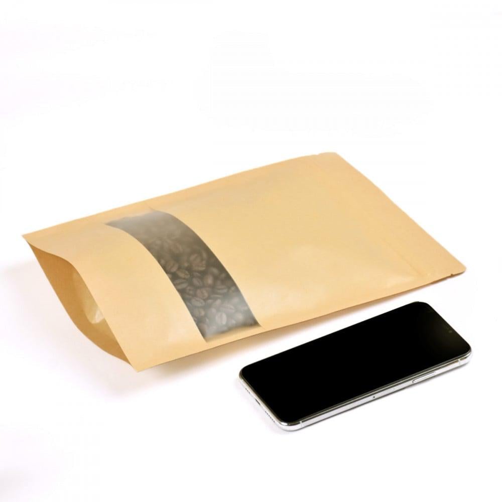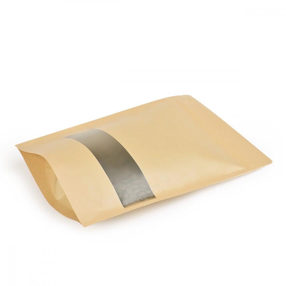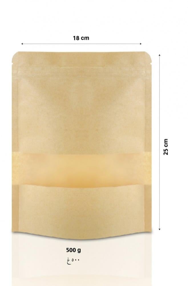 أكياس مصنوعة من ورق مقوى بلون كرافت محاطة بمادة مقاومة للماء والرطوبة والزيت ،تحتوي على نافذة تسمح برؤية محتوى الكيس دون الحاجة لفتحها ، تتميز بقفل مرن وقوي مثالية للمتاجر و الإستخدام المنزلي مناسبة : للقهوة ، الشاي ، البهارات، الحلويات ، المكسراتيستوعب 500 جرام من البهارات والمنتجات المطحونةالطول : 18 سمعرض قاعدة الكيس : 4 سم الإرتفاع : 25 سم اللون : كرافت الكمية : (50) كيس